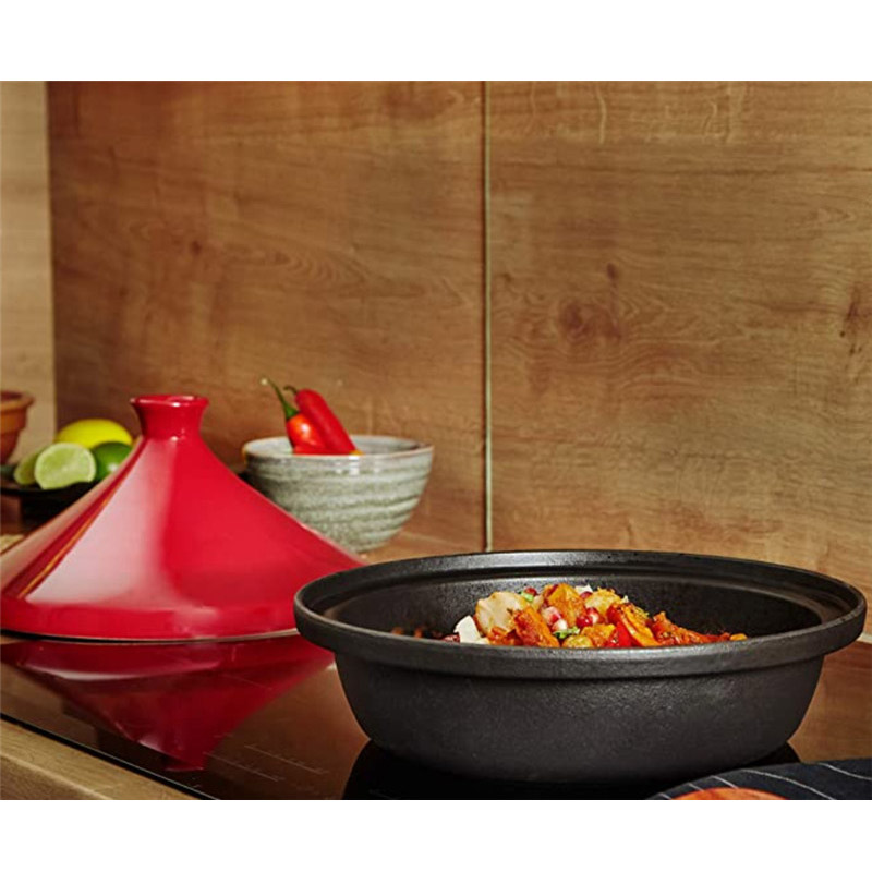 In addition, the enamel coating found on many modern cast iron tajines provides both durability and ease of maintenance. The non-stick surface prevents food from adhering, reducing the risk of scorching and making cleanup quick and simple—an important consideration in high-volume commercial settings. It also protects the iron core from acidic ingredients, ensuring that the pot remains in excellent condition for years of daily use.