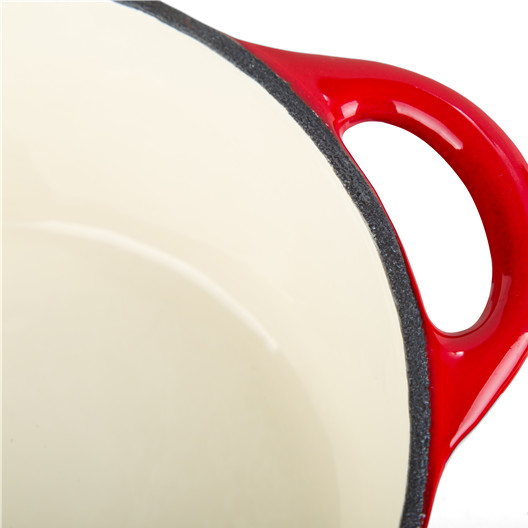 The interior enamel has a smooth finish that promotes caramelization, prevents sticking and resists stains.