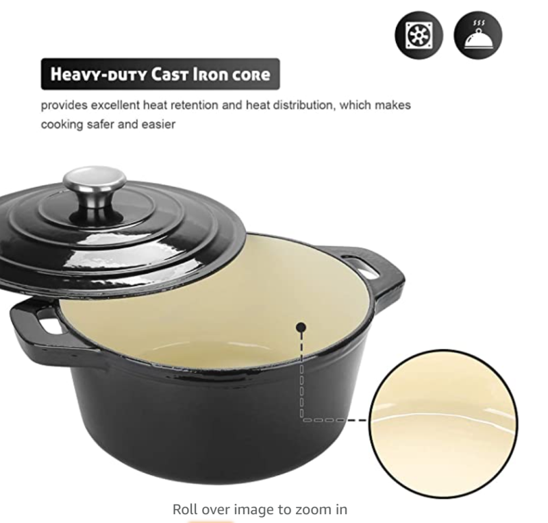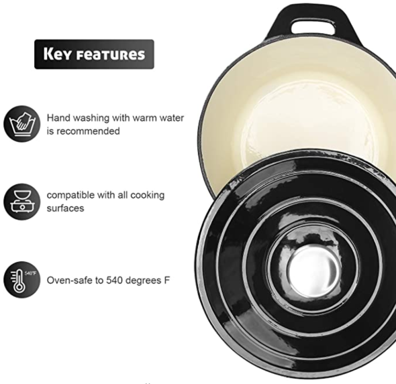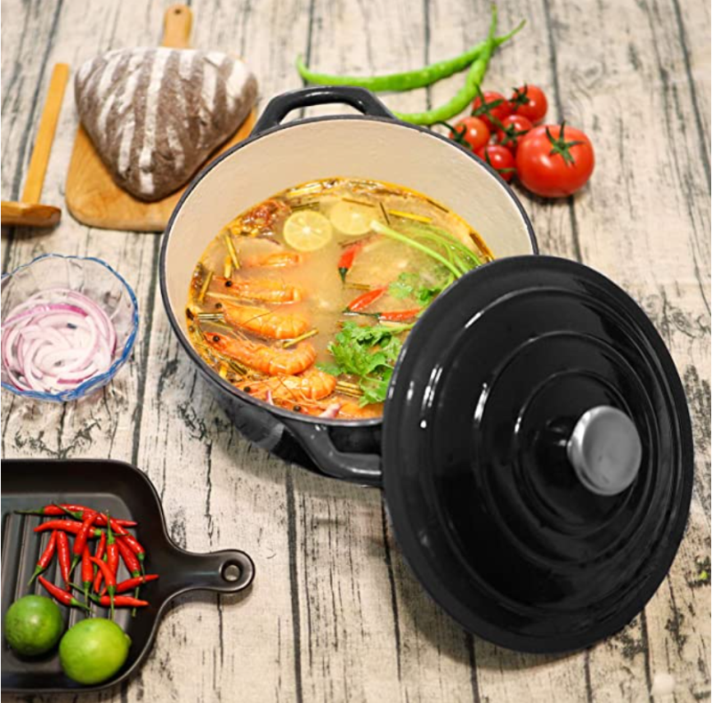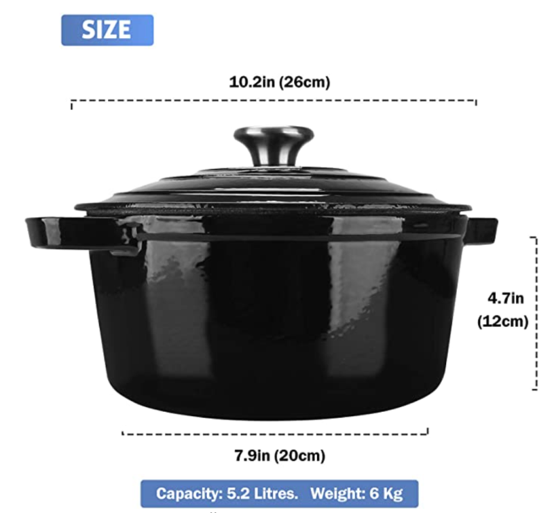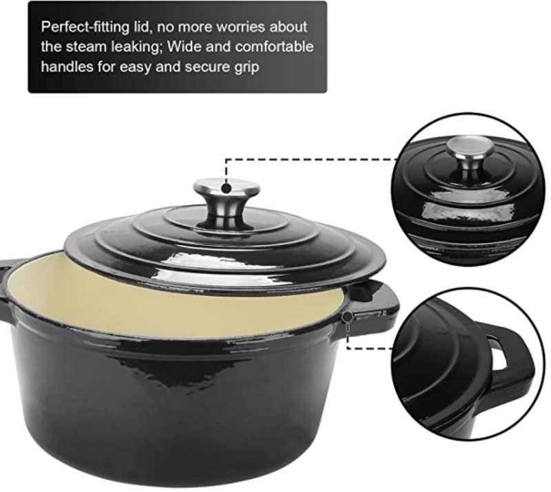 5,5 kvartos zománcozott öntöttvas holland sütő, kerek zománcozott holland sütőedény - fekete