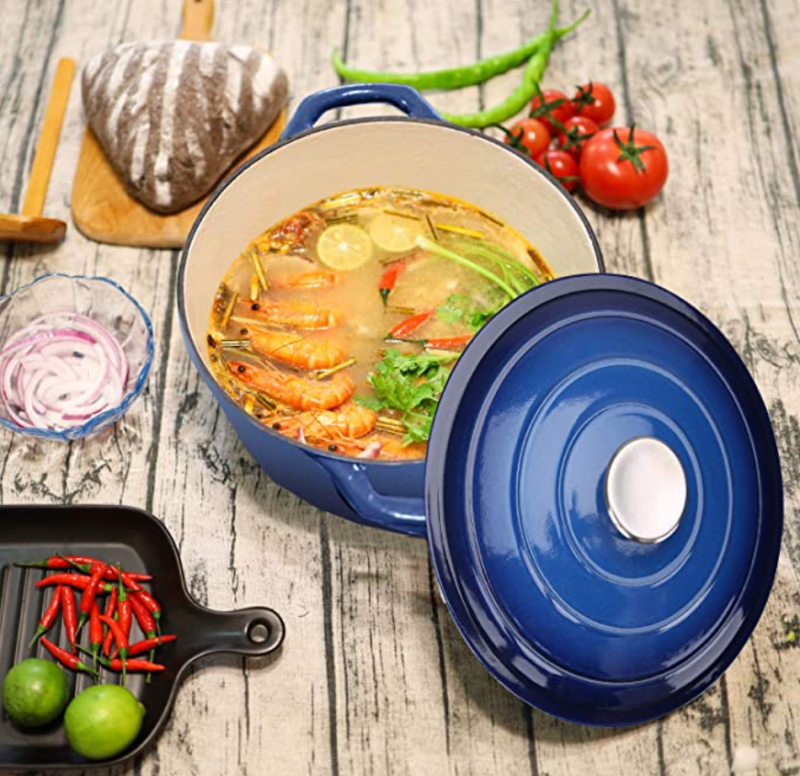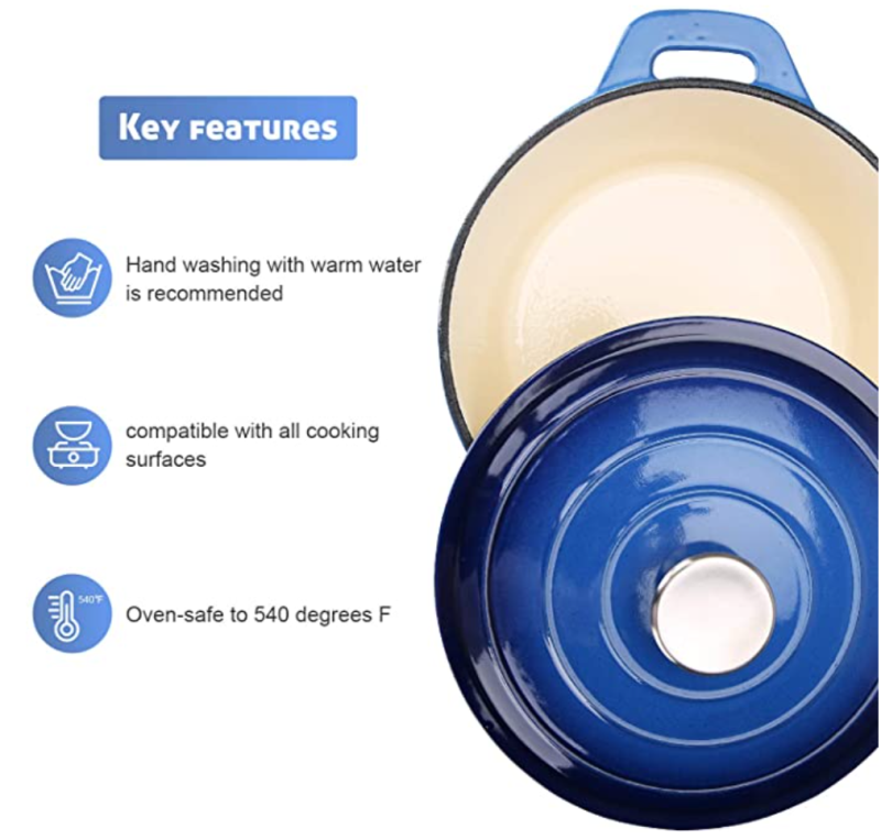 ● Kapacitás: 5,5-Quart; Zománcozott öntöttvas holland sütőedény fedővel pároláshoz, sütéshez, pirításhoz, pároláshoz, pároláshoz és pirításhoz