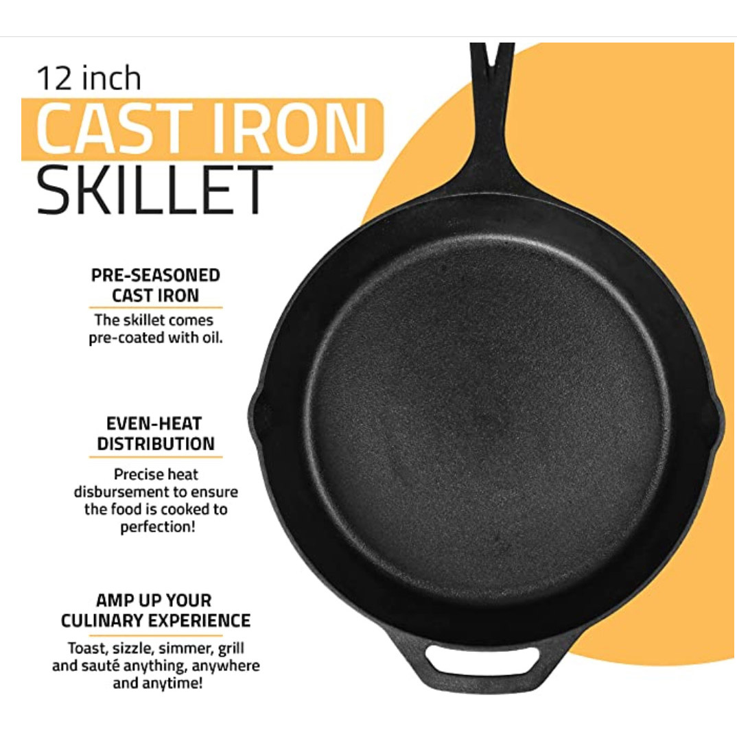 ● Előfűszerezett öntöttvas serpenyő: A 12,5 hüvelykes öntöttvas serpenyő az előszezonban érkezik, így a dobozból azonnal használatra kész, és megakadályozza a rozsdásodást