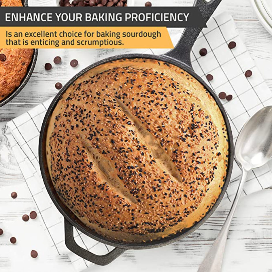 ● Egyenletes hőeloszlás – Ez az öntöttvas serpenyő ideális sütéshez és sütéshez. Az öntöttvas serpenyő egyenletesen tartja és osztja el a hőt a jobb főzési élmény érdekében